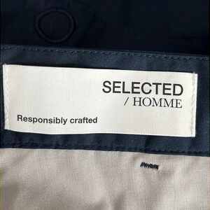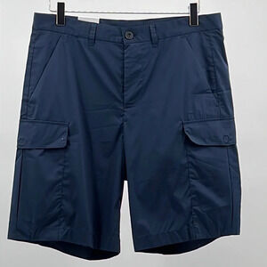 Selected Homme Molke Cargo Shorts in Sky Captain - NEW - Size Small. New with tag. Only tag is the attached factory tag. No price tag. Organic cotton blend. responsibly crafted, 2 slip pockets, 2 cargo pockets with hook & loop closures, zip fly with button closure, 2 back welt pockets with button closures, lightweight and just feels expensive. Approximate measurements: 16 1/2" waist, 11 1/2" rise, 8" inseam. Sold at Nordstrom. Color is navy blue.