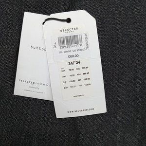 Selected Pants Mens 34x34 Black Micro Patterned Slime Tapered Trousers Office
