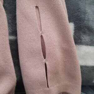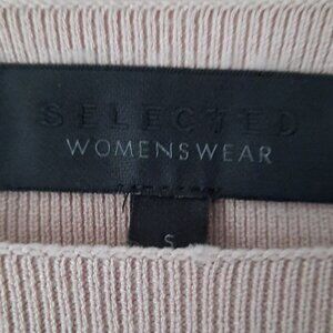 Selected Womens Wear Cutout Sleeve Boat Neck Sweater Size Small. Measurements are approximate. Chest 14 inches. Length from shoulder to hemline 21 inches. 53% viscose 47% polyamide. Rose color. Questions and offers welcome.