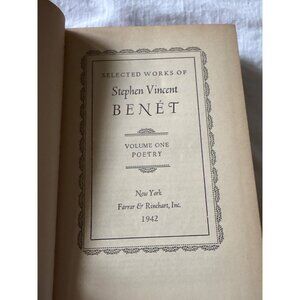 Selected Works Of Stephen Vincent Benet Volume One Poetry 1942 Hardcover Farrar