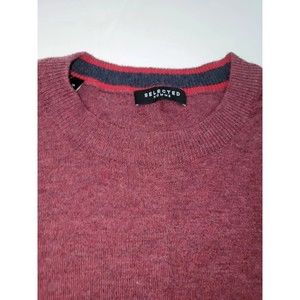 Selected/Homme Jumper Merino Wool Silk Blend Mens Sweater Size XL Burgundy Red