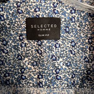 Blue and white floral print button up shirt in size XXL or 18. This is a Selected Homme Slim Fit shirt. It’s 100% cotton. It measures about 24” armpit to armpit and length is about 31.5”. No holes or stains and from a smoke free but pet loving home