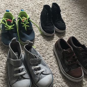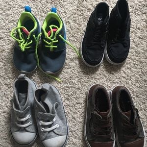 1. Roshe Run blue/lime/pink // 2. Supra black elastic high tops // 3. H&M heather grey high tops // 4. Cat & Jack brown (NWOT) zipper closure slip ons
