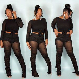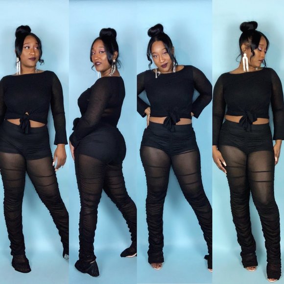 This sheer number is definitely a must-have! Featuring a high-waist band and ruched sides, this luxurious pant is sure to be a showstopper. It is also attached with the perfect shorts that a accentuate the derrière, but cover all the goods. Did I mention that there’s ton of stretch and the mesh feels like satin?! If this isn’t your new favorite pant, I don’t know what is! Model wearing a large.