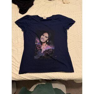 Navy blue Fruit of the Loom women’s t-shirt featuring a bold front graphic of Selena. Classic short sleeve, crewneck design made from soft cotton fabric. Perfect for fans of the legendary Tejano singer or collectors of music memorabilia.