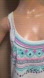 Stylish white tank top with vibrant geometric patterns. Ideal for casual wear.