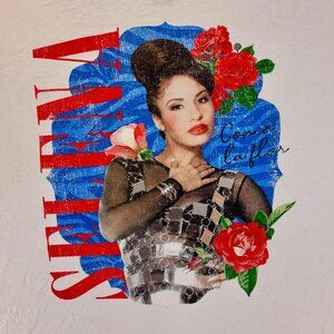 Official licensed Selena Quintanilla t-shirt featuring a vibrant “Como La Flor” graphic with roses and her iconic mirrored outfit. White cotton blend tee, tagged size 3X (fits plus). Rare find in extended sizing! Great condition, soft wear, no major flaws.