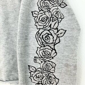 Gray cropped hoodie with raw hem and some minor fading - please see photos for details.