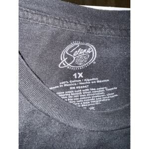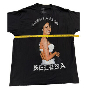 Subject/Brand: Selena graphic shirt featuring "COMO LA FLOR" and "SELENA" text on front.