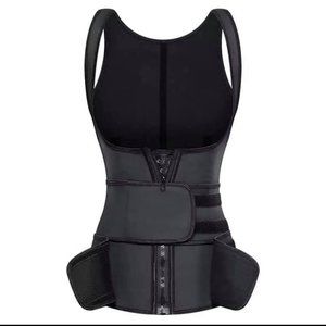A fully latex top quality waist trainer vest. It has hooks and zippers on the inside and also two velcro straps on the outside for extra compression.