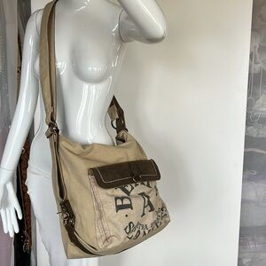 This is a great rare style Selena Vaughar Large Canvas Zip Top Crossbody Shoulder Bag. Minor scuff and small essentially unseen spots. No odors. No tears. From large pocket with double