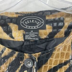 Selene Black/Orange Faux-Crocodile Tiger Print PVC Jacket Women's 14 Preowned