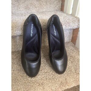 The Selene Pairs Women’s Low Block Heel Pumps are a stylish and versatile choice for any season. With a solid black color and round toe shape, these slip-on dress shoes offer comfort with features like cushioned arch support and memory foam padding. The low block heel provides stability while still adding a touch of elegance, suitable for various occasions from casual outings to formal events. The Selene Pairs brand ensures quality and a trendy style that is perfect for the modern woman on the go.