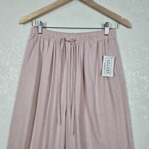 Selene Sport 100% Nubby Silk Pants Blush Pink Pull On Drawstring Pockets NEW