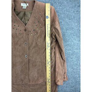 Selene Sport Jacket Skirt Set Women's 12 Brown Faux Suede Button Up Embellished