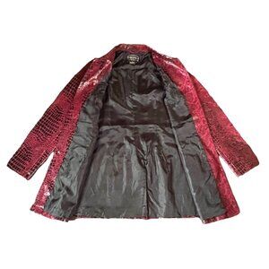 Selene Sport Red & Black Textured Reptile Print Long Sleeve Lined Jacket with Two Front Pockets & Back Center Vent, Button Front, Mid-Length, Size S