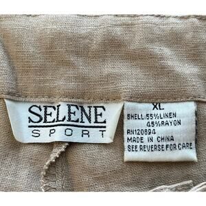 Selene Sport Womens XL Tan Beige Blouse/Pant Set Linen Blend Office Wear New