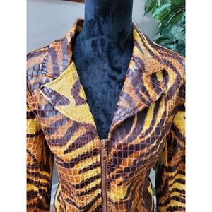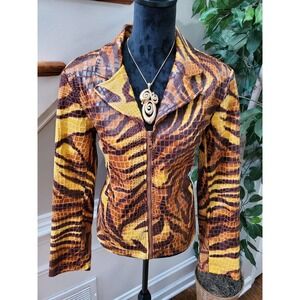 Selene Women Multicolor Polyvinyl Full Zip Front Long Sleeve Casual Jacket Size L.