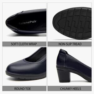 SelenePair Women's Chunky Low Block Heels Work Pumps Ladies Closed Round