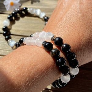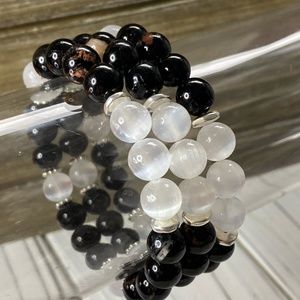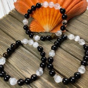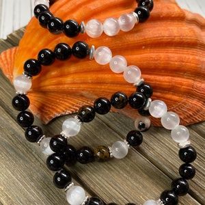 DESCRIPTION: To create this beautiful bracelet I selected Black Tourmaline on stone Matrix and Selenite. Think Protection (Black Tourmaline) and Uplifting Positive Energy (Selenite) which is also very protective. If you are wondering why the Black Tourmaline beads have other colors as well, the reason is because these beads are made from Black Tourmaline on it's Stone Matrix, meaning the Stone Matrix can be composed of feldspar, quartz, Iron inclusions, Jasper, clay minerals, and mica. Making the beads even more beautiful and unique.