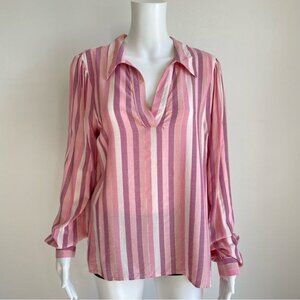 Pink and white stripped long sleeve blouse with gold thread detail.