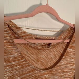 Self E EUC orange/cream metallic low back with gold chain long sleeve Size M