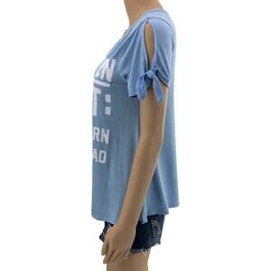 Self E SMALL Blue Attention If Lost Please Return Me To My Squad Group Cheer Shirt Tee Top Tie Cold Shoulder Scoop Neck Short Sleeve