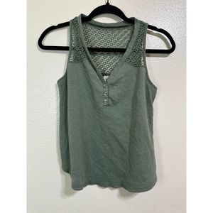 Self Esteem BOHO Lace Sleeveless Tank Olive Green Deep V Button Neckline Size S