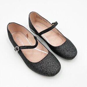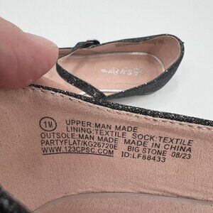 Size 1 little kid - black with silver and glittery sparkles. Worn to one event so they are in excellent condition.