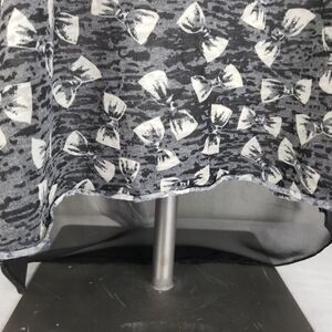Cute top with a gray front with a bow print fabric and a sheer black razorback sporting a horizontal zip in the center of the back! The hi-low design would make these perfect with a pair of denim shorts and a pair of black sandals!