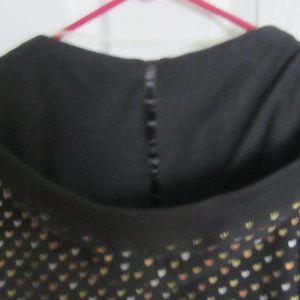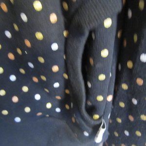 Long sleeved hoody - black background with gold, white, silver polka dots.