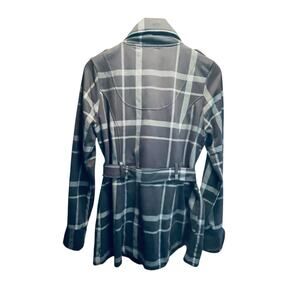 Self Esteem Womans Jacket Double Breasted Trench Coat Black-Gray Check Juniors Large Y2K