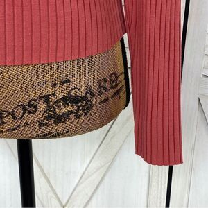 Self Esteem Ribbed Knit V Neck Crop Shirt Spice Orange Medium