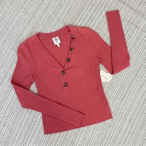 Self Esteem Ribbed Knit Long Sleeve Crop Shirt