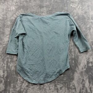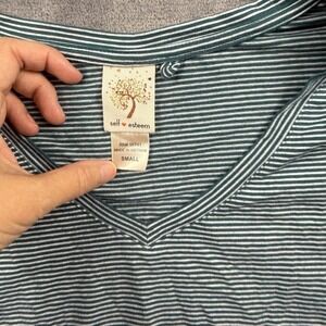 Self Esteem Shirt Womens Small Teal Green Striped Stretch 3/4 Sleeve Tee Top