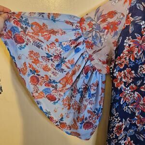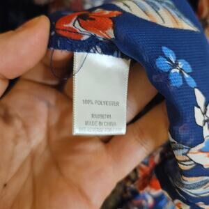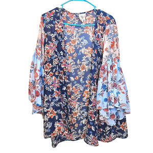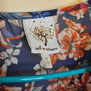 Self Esteem Size Medium M Boho Blue Orange Blouse Trumpet Sleeve Sheer Boho
