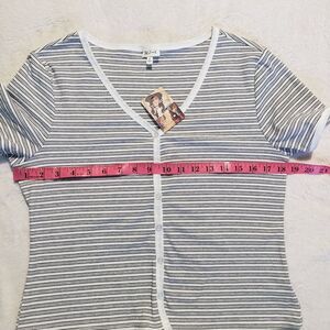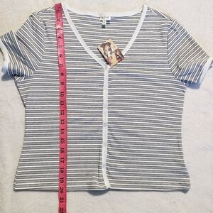 Self Esteem Top Misses Size XL Black and White Stripe Button Front Short V-Neck