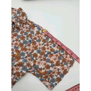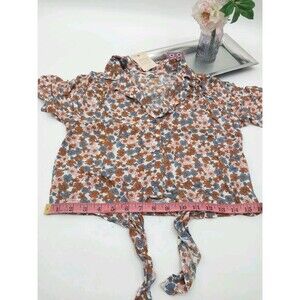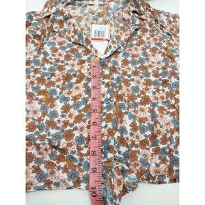 Self&E The Woven Junior Women Button front Top Shirt size X-SMALL Tie Front Print Floral Short Sleeve, color pink, blue, brown, Yellow and beige. New with tag