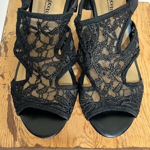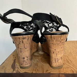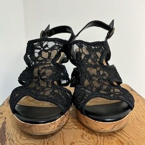 Self Esteem Footwear Sheer Black Lace Cork Wedges Ankle Strap Artesia
