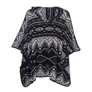 Self Esteem Womens Black Gray Aztec Design Hooded Poncho Sweater Size M