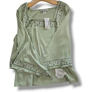 Self Esteem Women’s Plus Size 18/20 Sage Green Embroidered Top – NWT