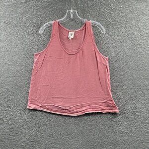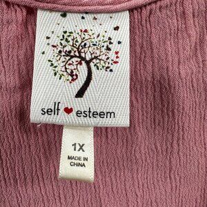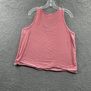 Self Esteem Womens Tank Top 1X Pink Sleeveless Crinkle Crochet Pullover Shirt
