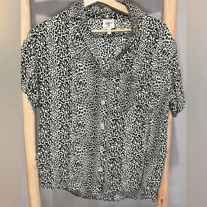 Self Esteem button up shirt size M cream/black animal print short sleeve pocket