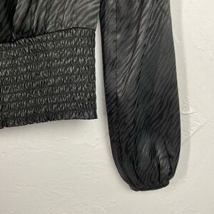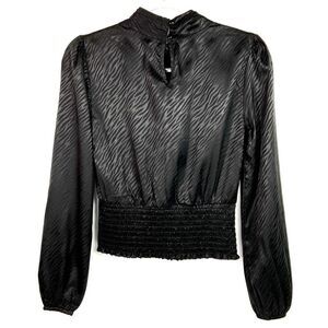 Self Esteem Black Zebra Stripe Shirred Long Sleeve Top XS New