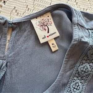 Self Esteem sage Green crochet Trimmed Top w/ cute bow behind women's XL