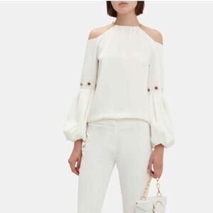 Self Portrait Balloon Sleeve Gold Chain Blouse Sz 6 Quiet Luxary *Flaw*