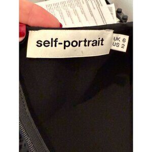 Self Portrait Bell Sleeve Ponte Lace Trim Shift Dress black - Size 2