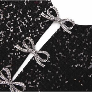 It's all in the details: black sequin-studded bouclé and diamanté bow embellishments give this artfully tailored mini all-over shine, whilst a leg-lengthening silhouette is the cherry on top. Happy to ship asap!