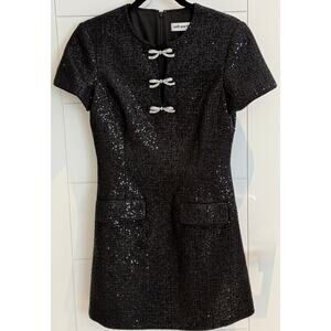 Self Portrait Black Boucle Bow Mini Dress Size 6