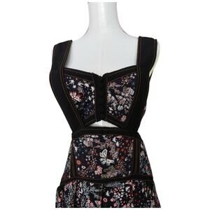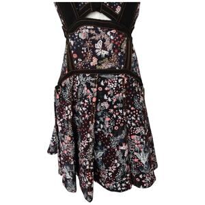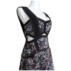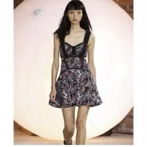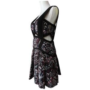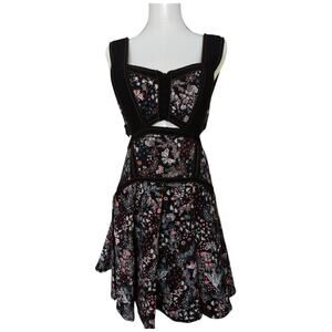 Self Portrait Black Multi Floral Jacquard Mini Dress Cutout Fit & Flare Size 6
